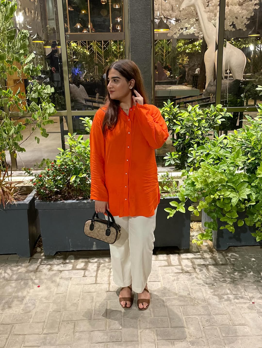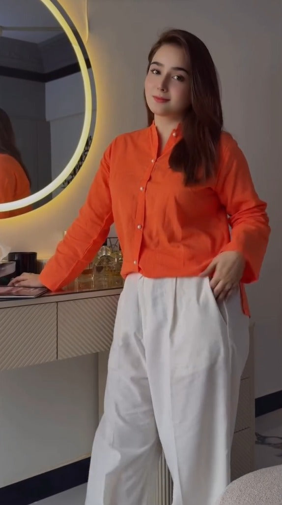 A breezy co-ord featuring a burnt orange top and airy beige trousers the Burnt Peach Set blends earthy tones with everyday ease.