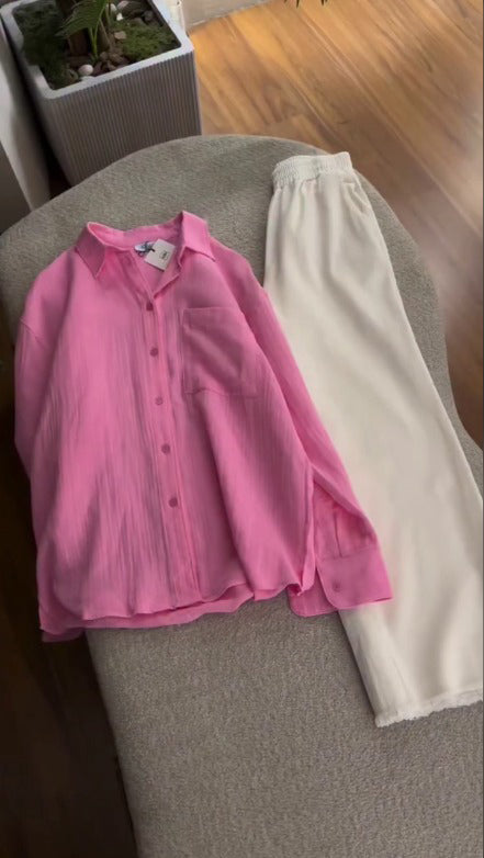 The Classic Ease Co-ord is your go-to for chic everyday wear  pairing a breezy button-down with relaxed trousers for a look that’s as comfortable as it is stylish.