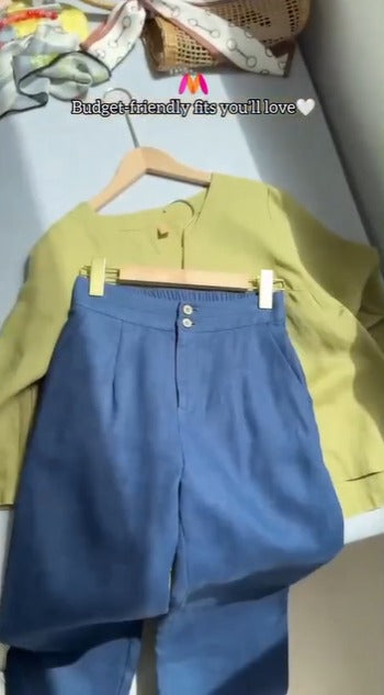Stay effortlessly chic with the Lime Breeze Set a refreshing lime-green top paired with deep blue trousers Perfect for everyday wear.